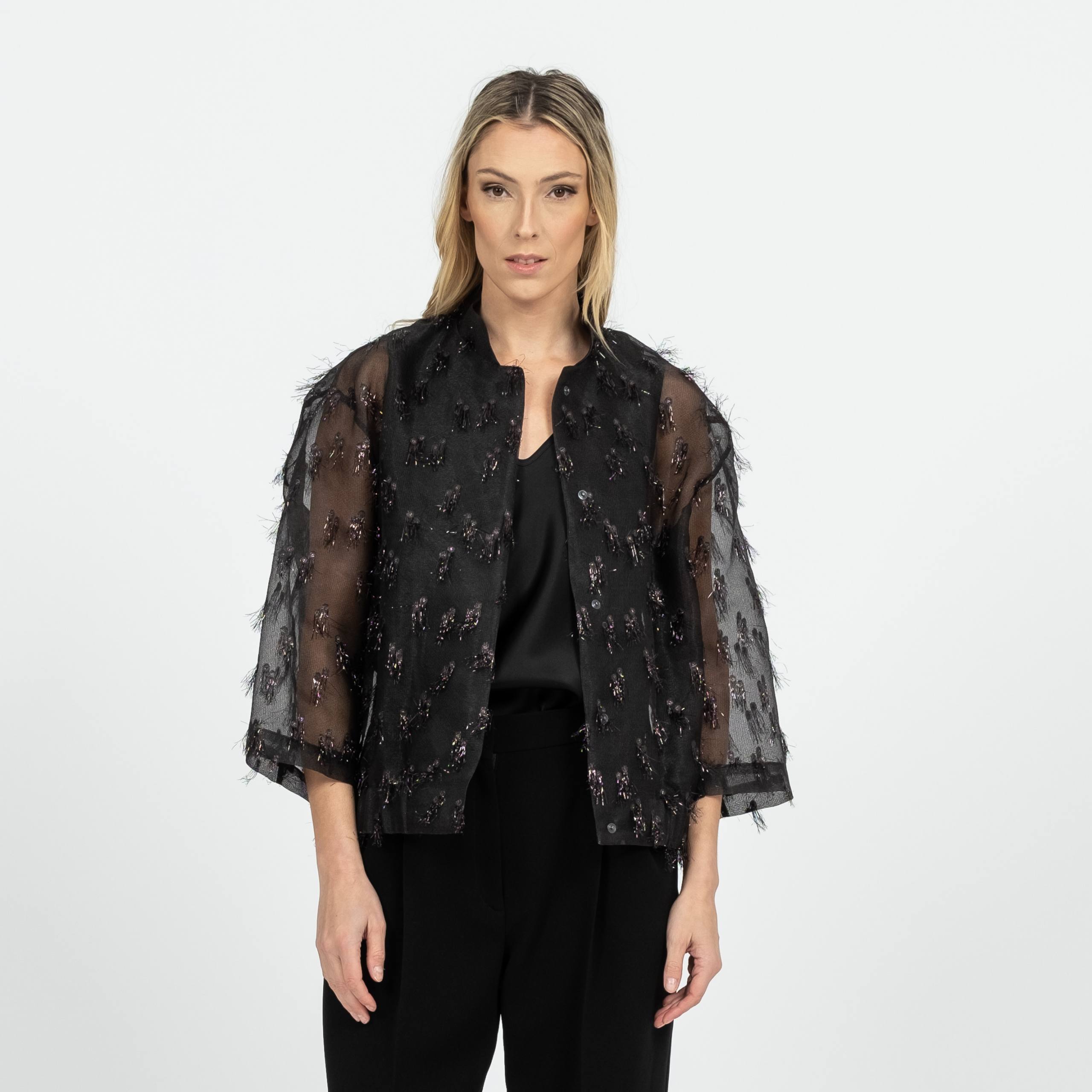 Oversize tegumoega bomber. Jakk on eest suletav trukkidega.