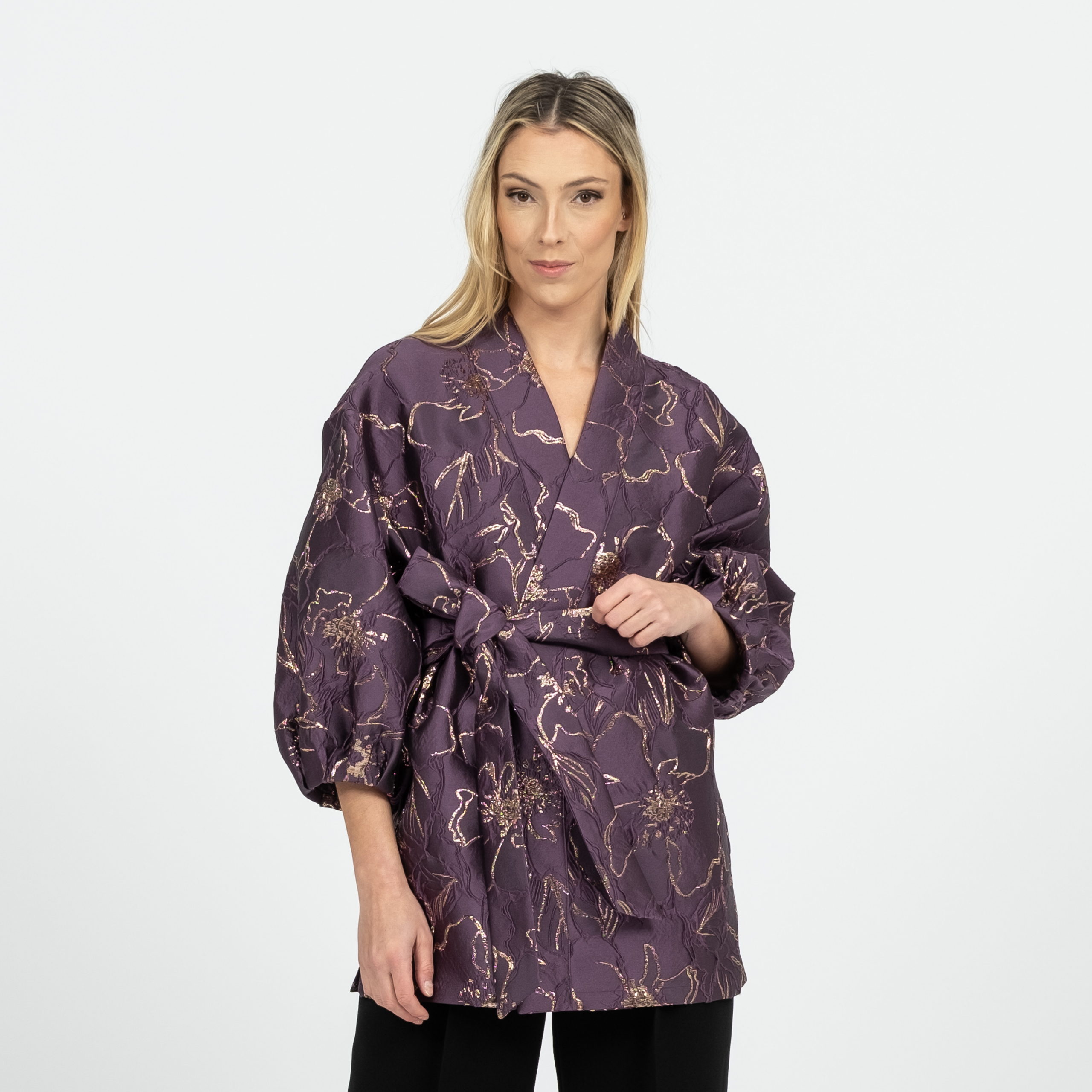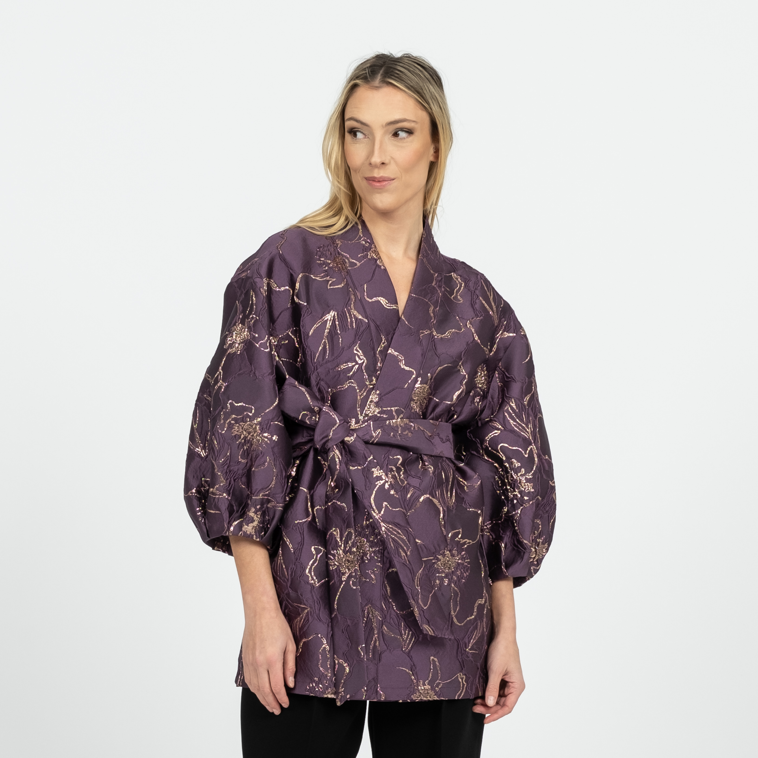 Pikendatud õlajoonega oversize tegumoega voltidega varrukaga jakk. Jakil on küljel lõhikud. Jakki saab kanda vööga ja ilma.